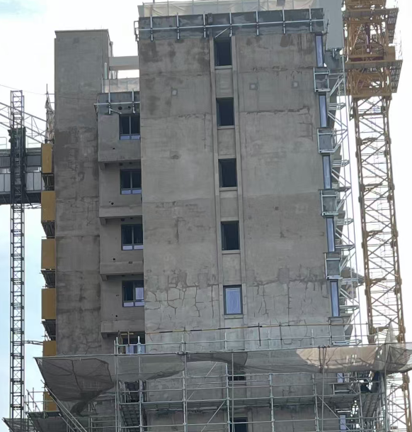 然而,让业主们感到不安的是,开发商和施工方并未从根本上解决问题。据他们观察,此前反映的开裂情况不仅未能得到妥善处理,施工方反而直接对开裂的抹灰层进行了覆盖施工,随后便急匆匆地拆除了其他楼栋的脚手架和挂网,试图在交房前将开裂的事实“一盖了之”。